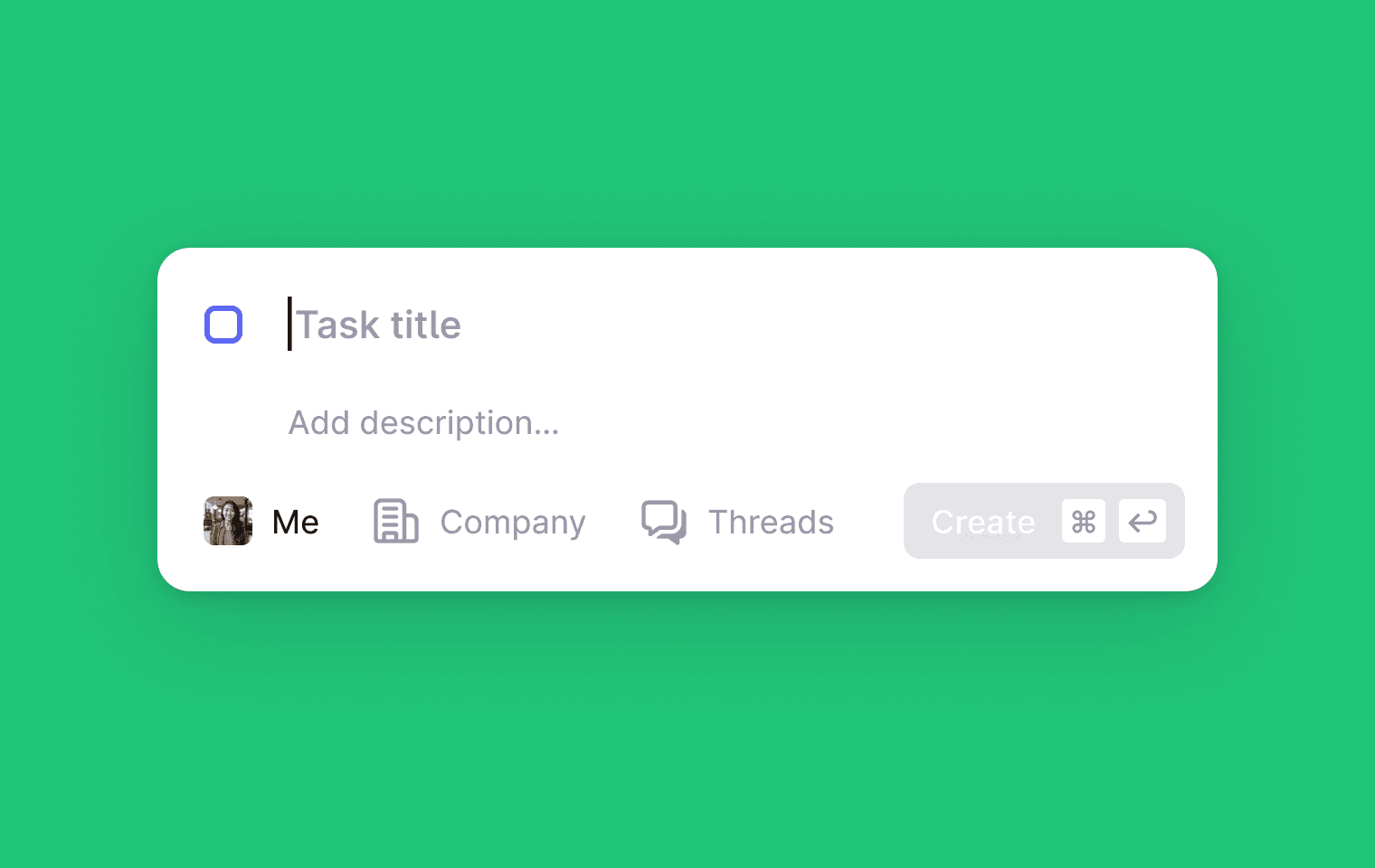 Create a task for anything that needs an internal action, a reminder, or a customer follow-up, and keep it linked to the thread/company so the context stays together.