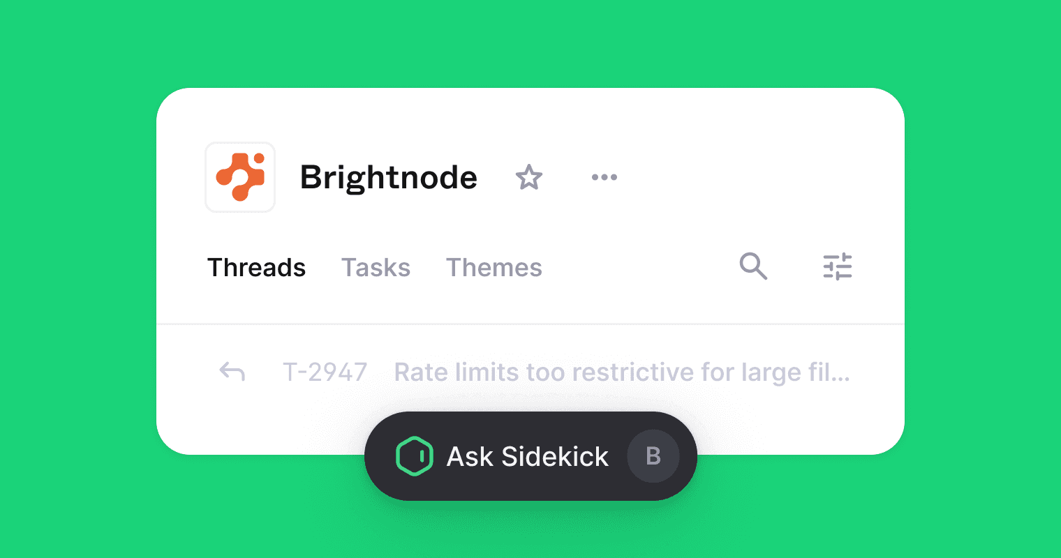 Open any company or tenant, hit B, and ask anything about previous conversations. Sidekick reads across all their threads in your current view and gets you an answer fast.