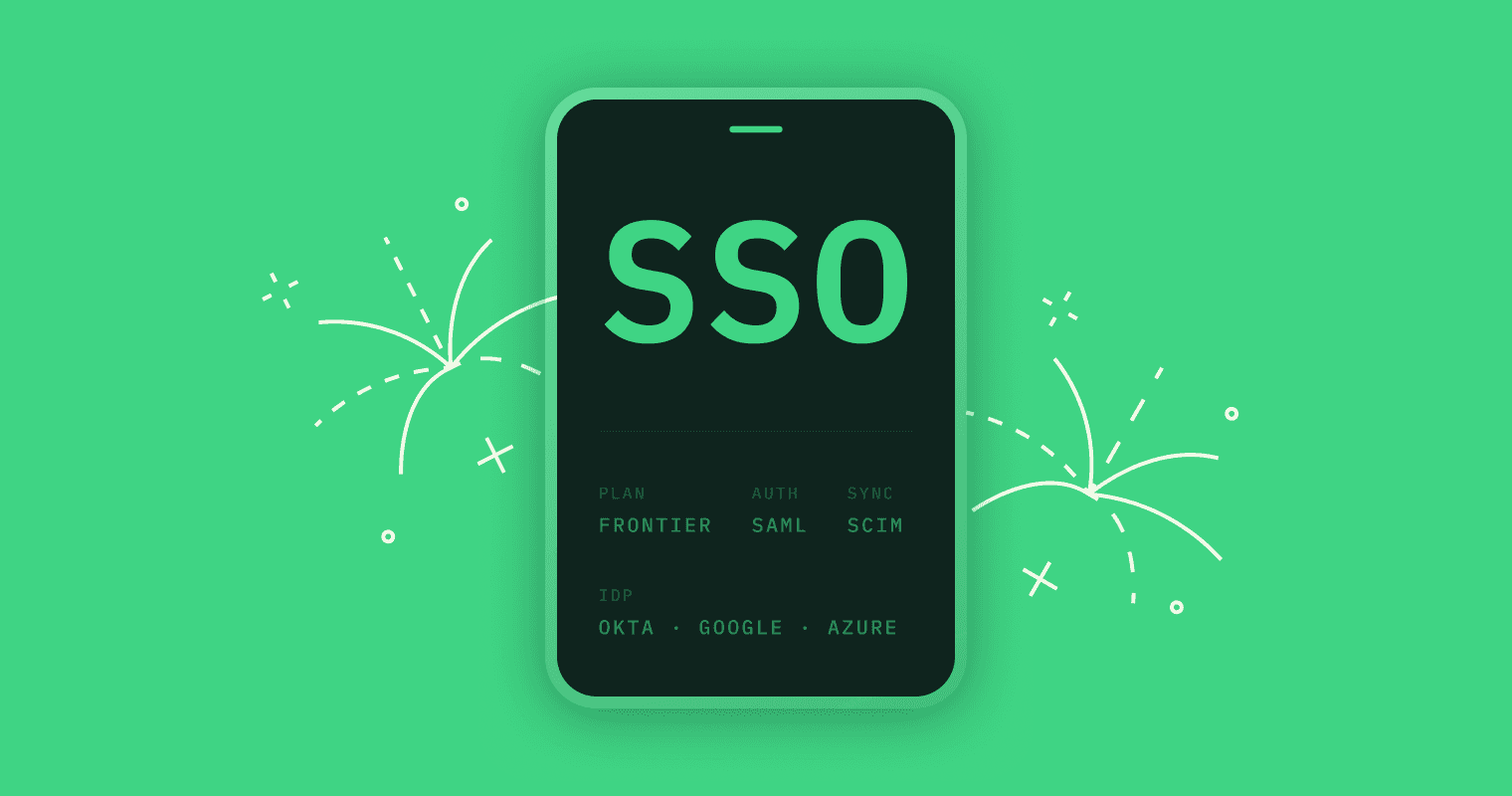Available on the Frontier plan. To get started, head to Settings → SSO. Full details in our help center.