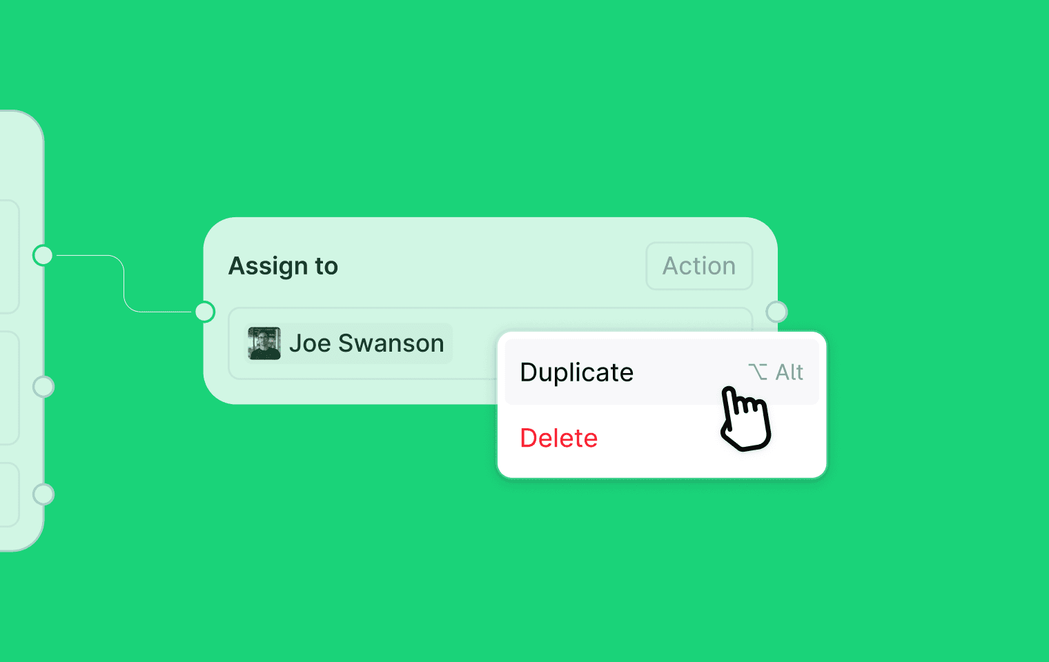 Right-click any node on the canvas and select Duplicate, or hold Option (Mac) / Alt (Windows) while dragging to drop a copy at a new position. Both methods preserve the step's configuration and branch structure.